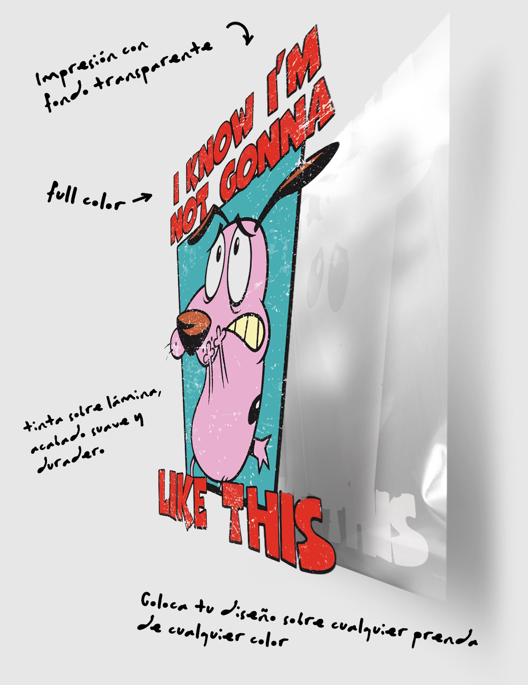 Sube tu diseño y te llegará una lámina para personalizar cualquier prenda en pocos minutos.